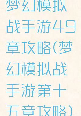 梦幻模拟战手游49章攻略(梦幻模拟战手游第十五章攻略)