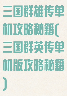 三国群雄传单机攻略秘籍(三国群英传单机版攻略秘籍)