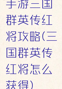 手游三国群英传红将攻略(三国群英传红将怎么获得)