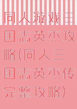 同人游戏三国志英杰攻略(同人三国志英杰传完整攻略)