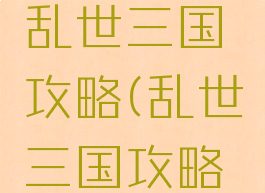 肆狼游戏乱世三国攻略(乱世三国攻略手游)