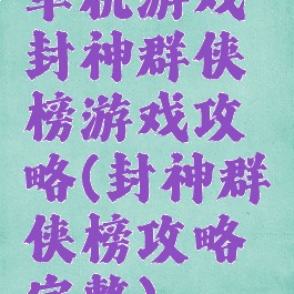 单机游戏封神群侠榜游戏攻略(封神群侠榜攻略完整)