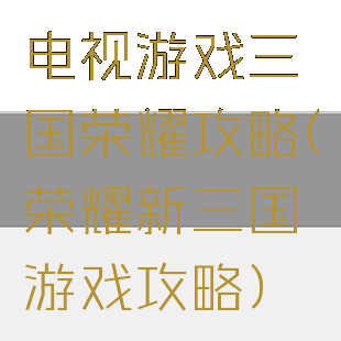 电视游戏三国荣耀攻略(荣耀新三国游戏攻略)