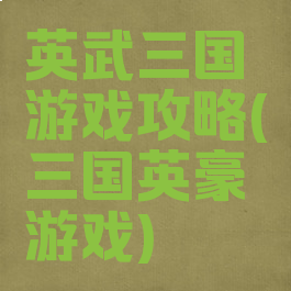所在位置: 首页 > 专题 > 英武三国游戏攻略(三国英豪游戏)