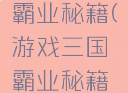游戏三国霸业秘籍(游戏三国霸业秘籍大全)