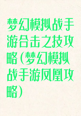 梦幻模拟战手游合击之技攻略(梦幻模拟战手游凤凰攻略)