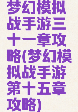 梦幻模拟战手游三十一章攻略(梦幻模拟战手游第十五章攻略)