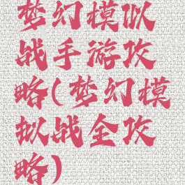 梦幻模似战手游攻略(梦幻模拟战全攻略)