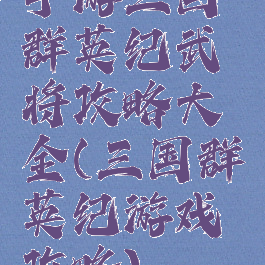 手游三国群英纪武将攻略大全(三国群英纪游戏攻略)