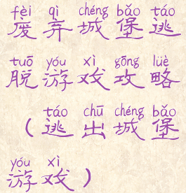 废弃城堡逃脱游戏攻略(逃出城堡游戏)