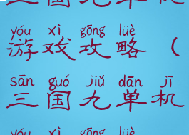 三国九单机游戏攻略(三国九单机游戏攻略)