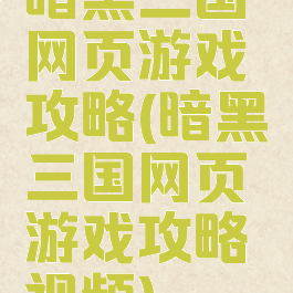 暗黑三国网页游戏攻略(暗黑三国网页游戏攻略视频)