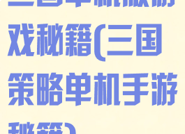 三国单机版游戏秘籍(三国策略单机手游秘籍)