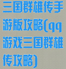三国群雄传手游版攻略(qq游戏三国群雄传攻略)