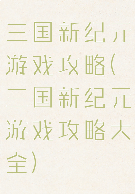 三国新纪元游戏攻略(三国新纪元游戏攻略大全)