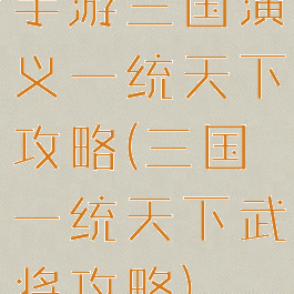 手游三国演义一统天下攻略(三国一统天下武将攻略)