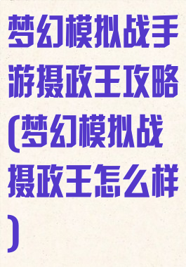 梦幻模拟战手游摄政王攻略(梦幻模拟战摄政王怎么样)
