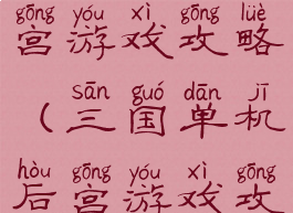 三国单机后宫游戏攻略(三国单机后宫游戏攻略视频)