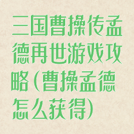 三国曹操传孟德再世游戏攻略(曹操孟德怎么获得)