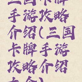 三国卡牌手游攻略介绍(三国卡牌手游攻略介绍大全)