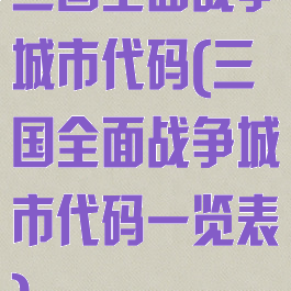 三国全面战争城市代码(三国全面战争城市代码一览表)