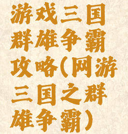 游戏三国群雄争霸攻略(网游三国之群雄争霸)