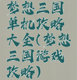 梦想三国单机攻略大全(梦想三国游戏攻略)