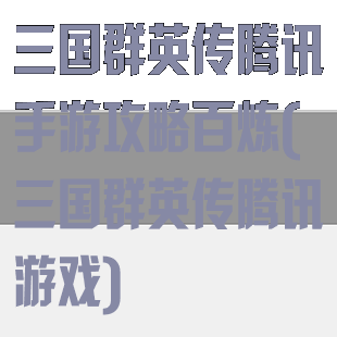 三国群英传腾讯手游攻略百炼(三国群英传腾讯游戏)