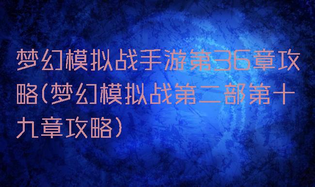 梦幻模拟战手游第36章攻略(梦幻模拟战第二部第十九章攻略)