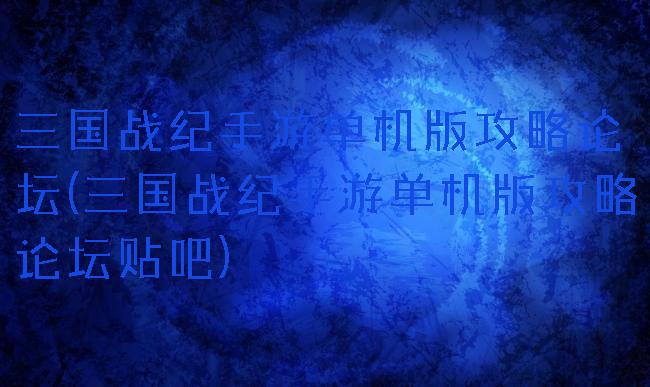 三国战纪手游单机版攻略论坛(三国战纪手游单机版攻略论坛贴吧)