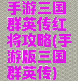 手游三国群英传红将攻略(手游版三国群英传)