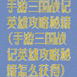手游三国战记英雄攻略秘籍(手游三国战记英雄攻略秘籍怎么获得)