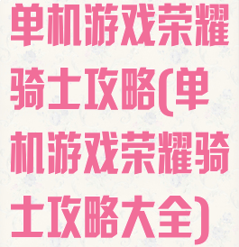 单机游戏荣耀骑士攻略(单机游戏荣耀骑士攻略大全)