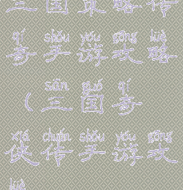 三国策略传奇手游攻略(三国奇侠传手游攻略)