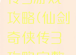 仙剑奇侠传3游戏攻略(仙剑奇侠传3攻略完整攻略)