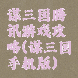 谋三国腾讯游戏攻略(谋三国手机版)