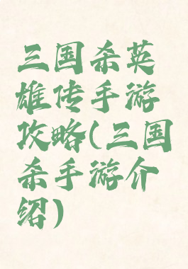 三国杀英雄传手游攻略(三国杀手游介绍)