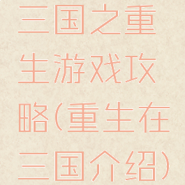 所在位置: 首页 > 专题 > 三国之重生游戏攻略(重生在三国介绍)