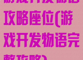 游戏开发物语攻略座位(游戏开发物语完整攻略)