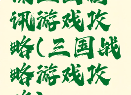 谋三国腾讯游戏攻略(三国战略游戏攻略)