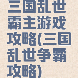 三国乱世霸主游戏攻略(三国乱世争霸攻略)