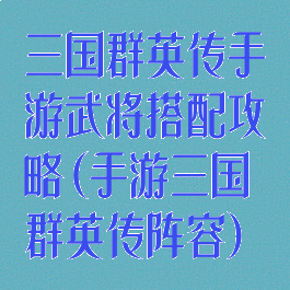 三国群英传手游武将搭配攻略(手游三国群英传阵容)