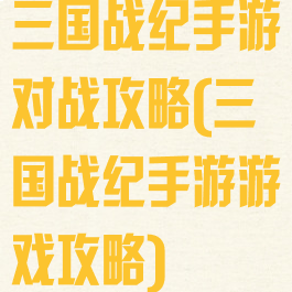 三国战纪手游对战攻略(三国战纪手游游戏攻略)