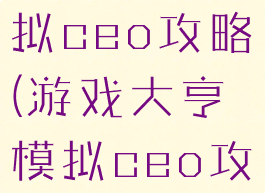 游戏大亨模拟ceo攻略(游戏大亨模拟ceo攻略)