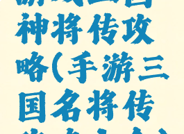 游戏三国神将传攻略(手游三国名将传攻略大全)