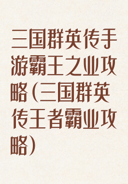 三国群英传手游霸王之业攻略(三国群英传王者霸业攻略)