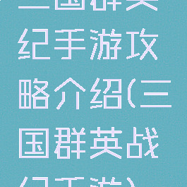 三国群英纪手游攻略介绍(三国群英战纪手游)