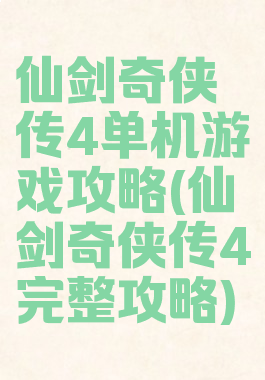 仙剑奇侠传4单机游戏攻略(仙剑奇侠传4完整攻略)