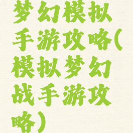 梦幻模拟手游攻略(模拟梦幻战手游攻略)