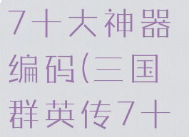 三国群英传7十大神器编码(三国群英传7十大神器)